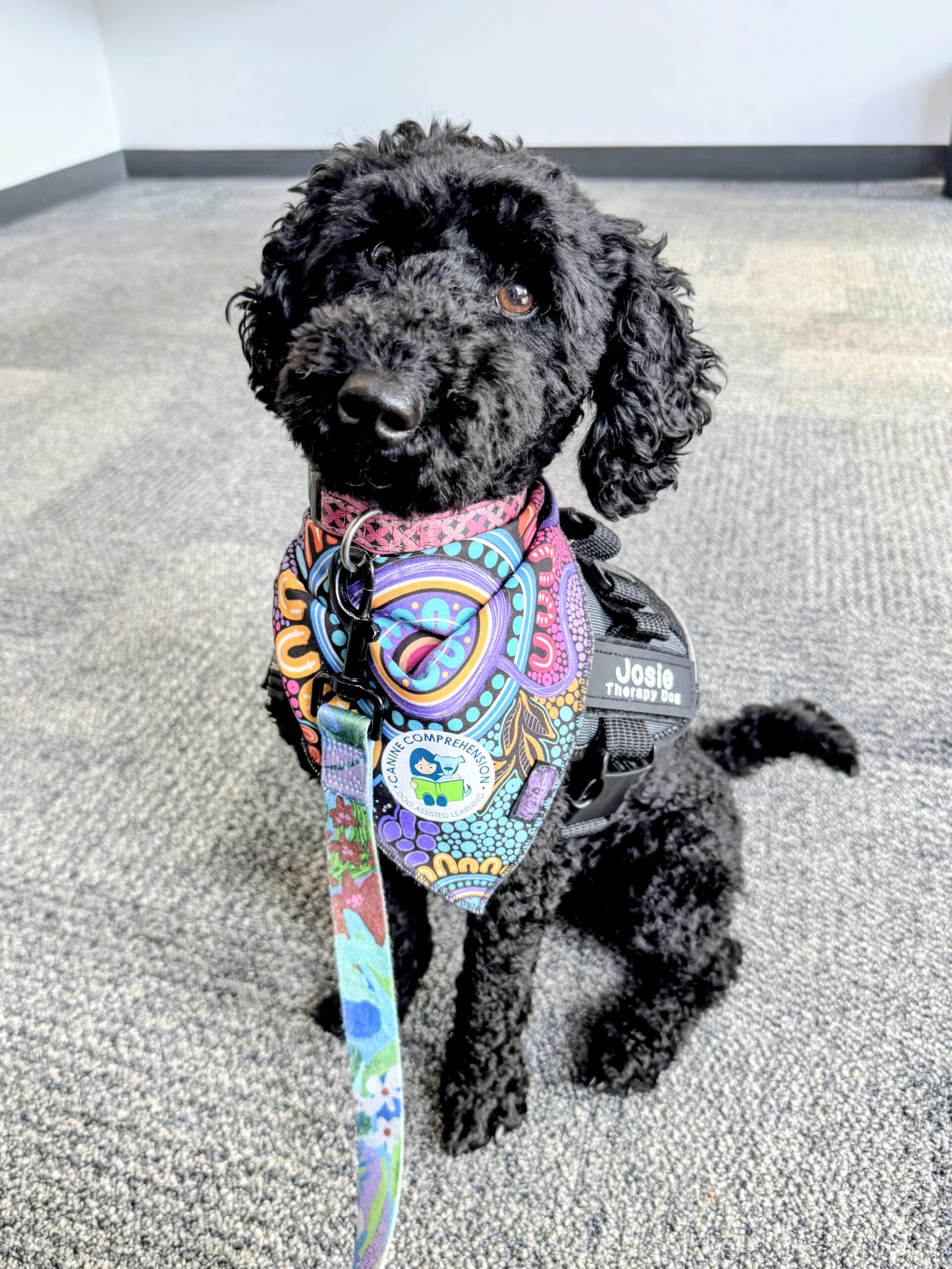 Josie is excited to join Canine Comprehension because it means spending her days with students, playing games, learning new things, and offering care and comfort. With her human, Mini, by her side, she’s ready to come and meet you. She can’t wait to learn with you!