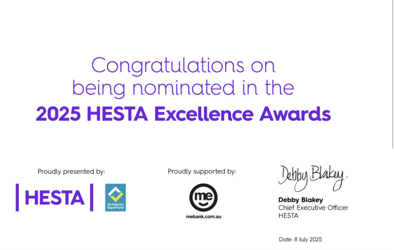 We’re nominated for the 2025 HESTA Excellence Awards!